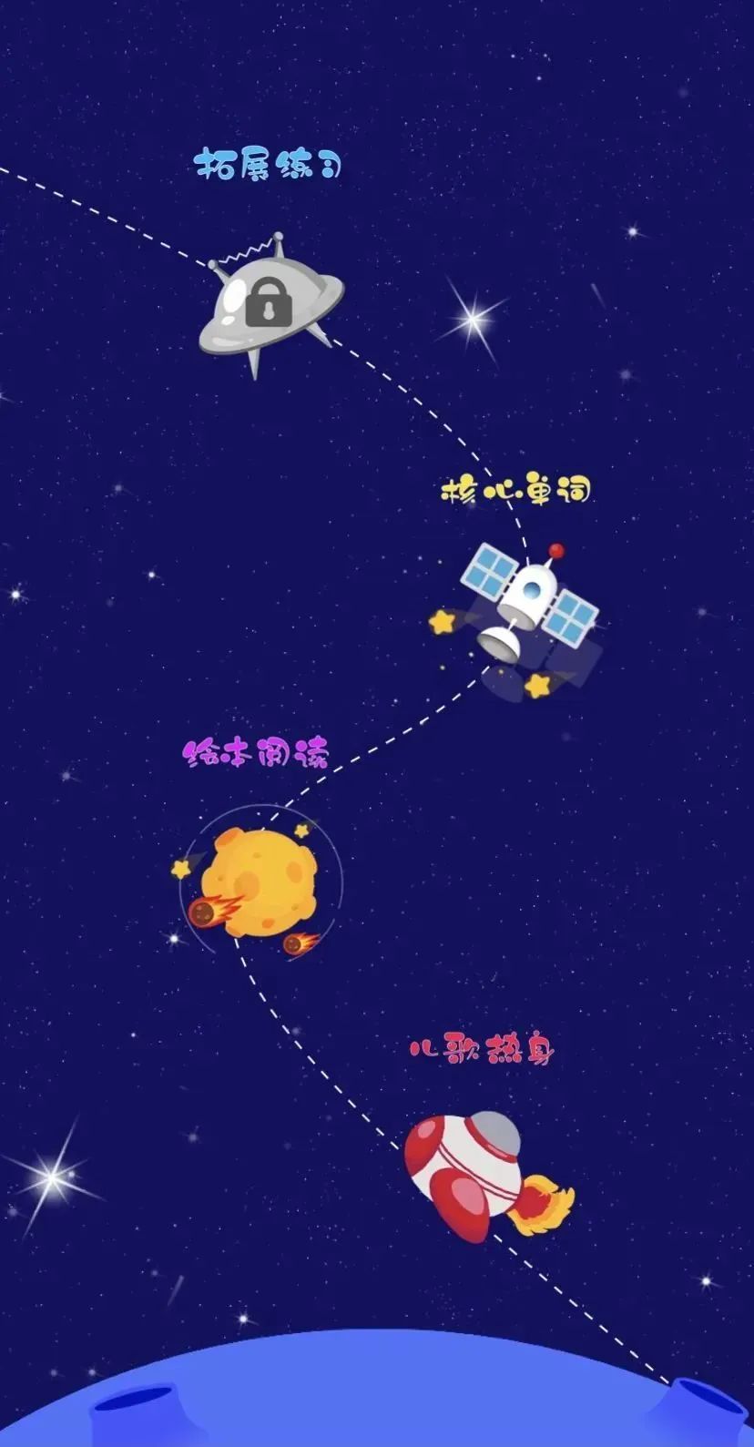 可以从拓展练习-核心单词-绘本阅读-儿歌热身