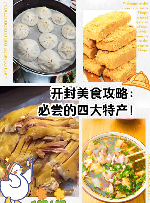开封四宝包括黄河鲤鱼焙面、开封灌汤包、炒凉粉和桶子鸡。非常适合一家人一起品尝!